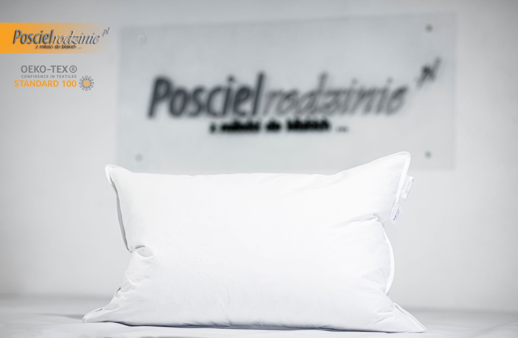 Struktura materiału - Jako materiał wsypowy wykorzystujemy 100% bawełnę puchoszczelną. Jest to specjalny typ bawełnianego inletu, który charakteryzuje się bardzo wysoką gramaturą 135g/m2, dzięki czemu drobniutki puch i pierze nie wydostają się na zewnątrz, jednocześnie cała poduszka „oddycha”. Dodatkowo do wzmocnienia brzegów stosujemy bizę w kolorze białym. Co bardzo ważne - bawełna użyta do produkcji naszych poduszek posiada certyfikat OEKO-TEX® Standard 100.