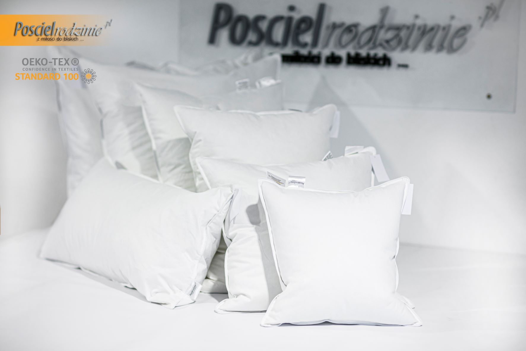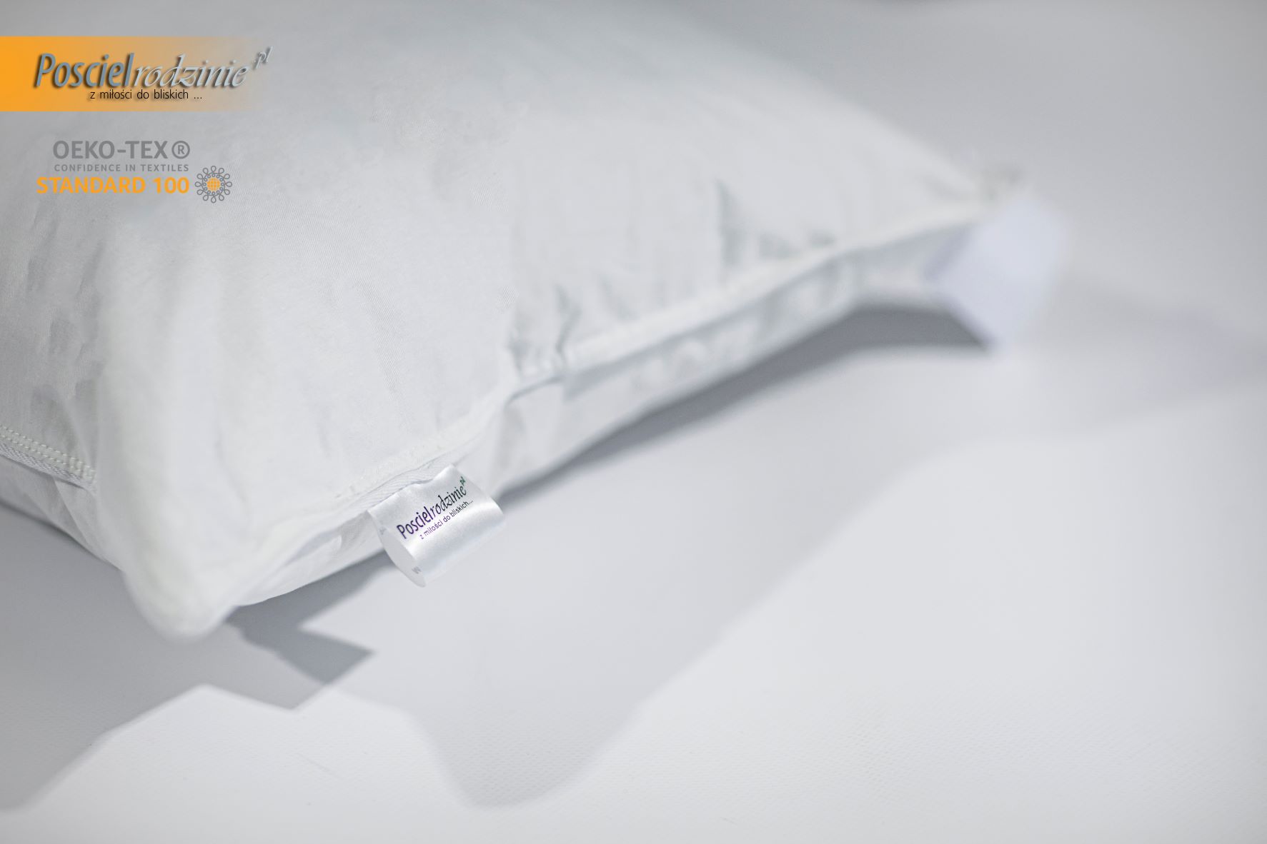 Oddychająca powierzchnia - Odpowiednio dobrana mieszanka puchu i delikatnego pierza sprawia, że podczas snu głowa nie poci się, ponieważ wilgoć jest naturalnie przyjmowana, a zastosowana przez nas technologia doboru masy wsadu pozwala usunąć jej nadmiar.