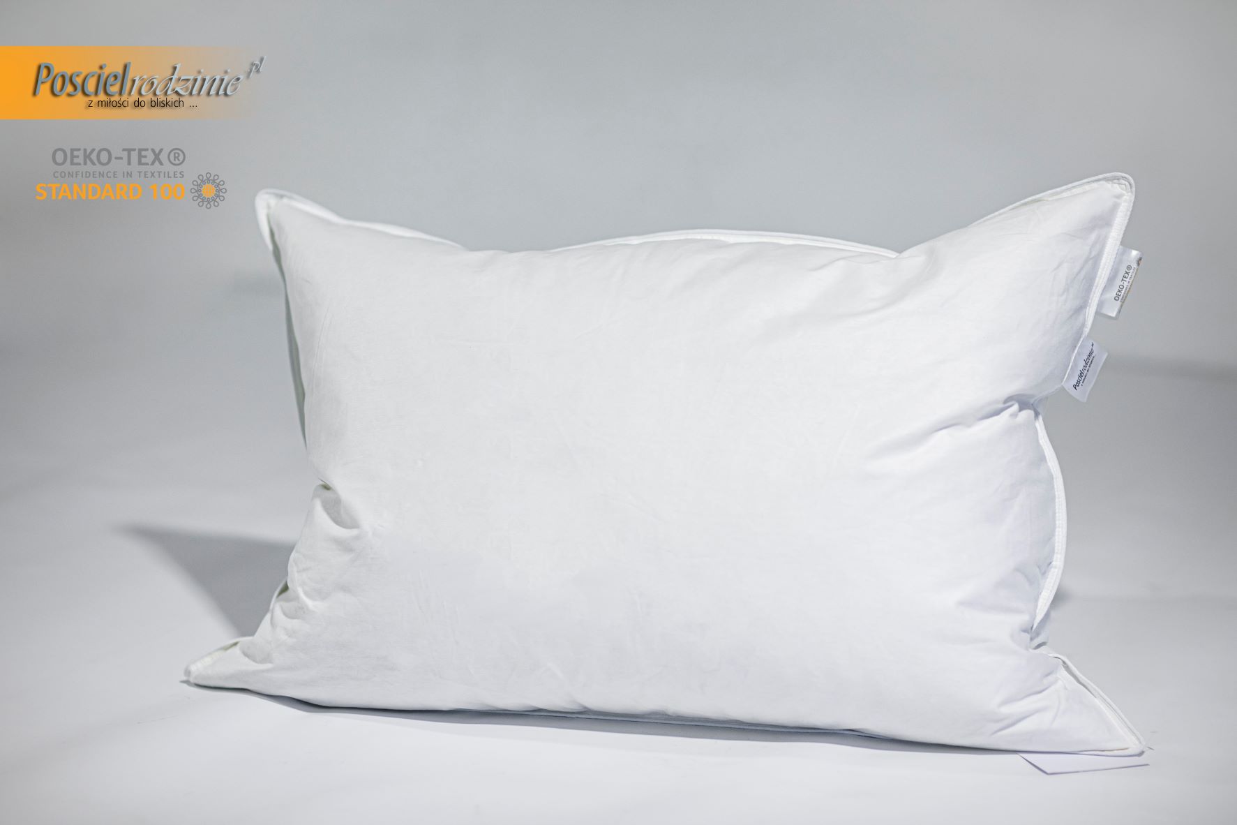 Oddychająca powierzchnia - Odpowiednio dobrana mieszanka puchu i delikatnego pierza sprawia, że podczas snu głowa nie poci się, ponieważ wilgoć jest naturalnie przyjmowana, a zastosowana przez nas technologia doboru masy wsadu pozwala usunąć jej nadmiar.